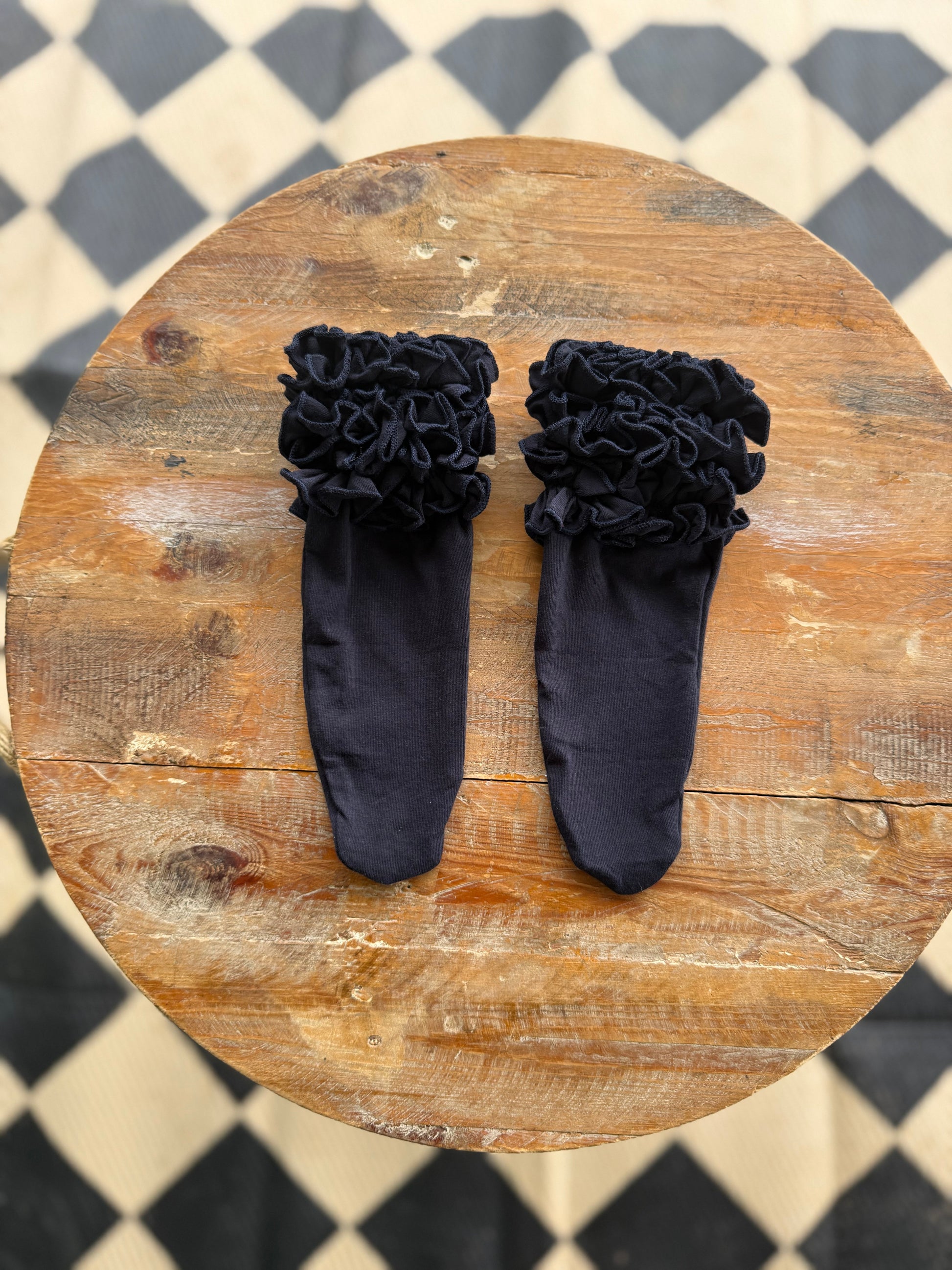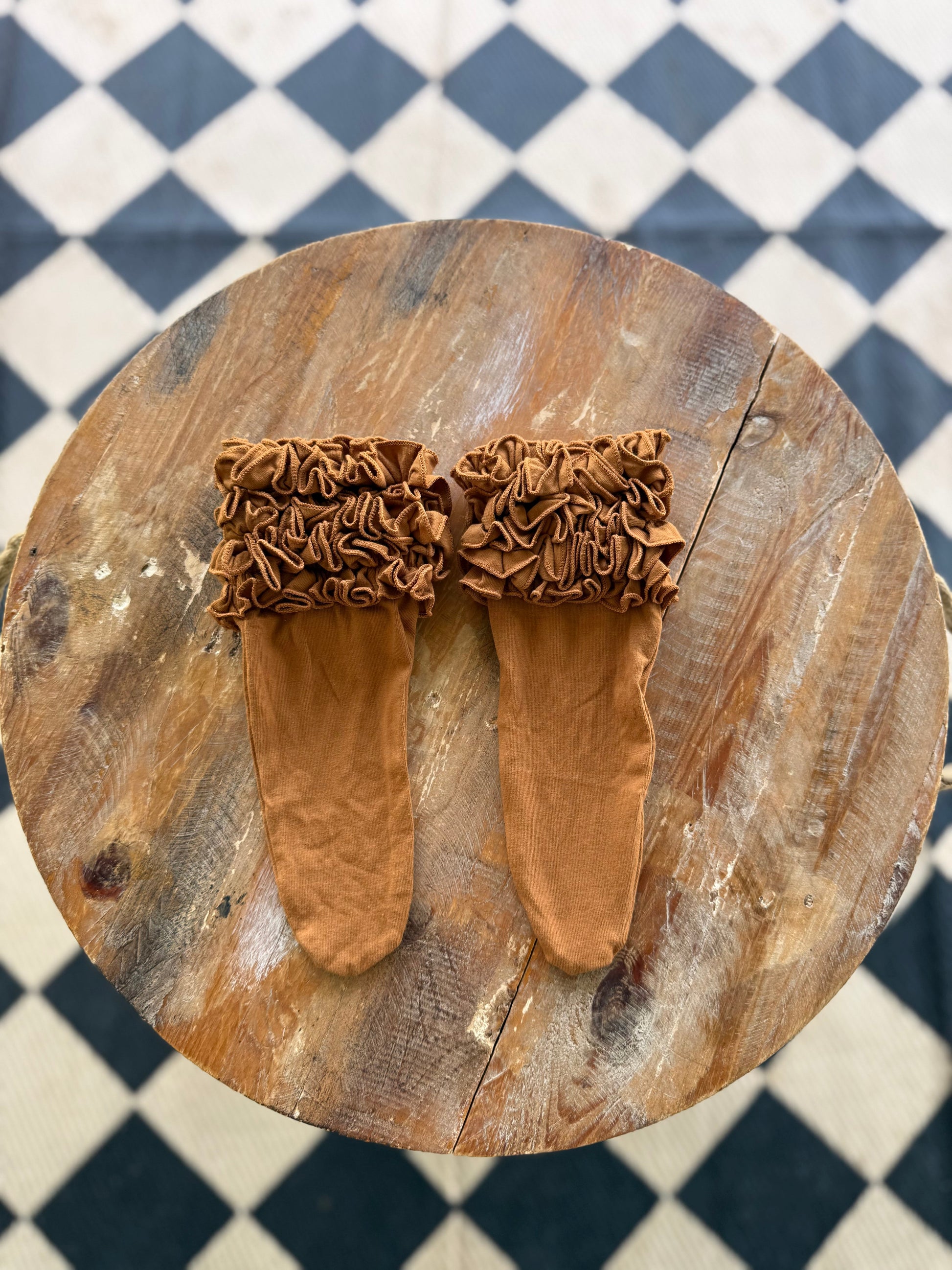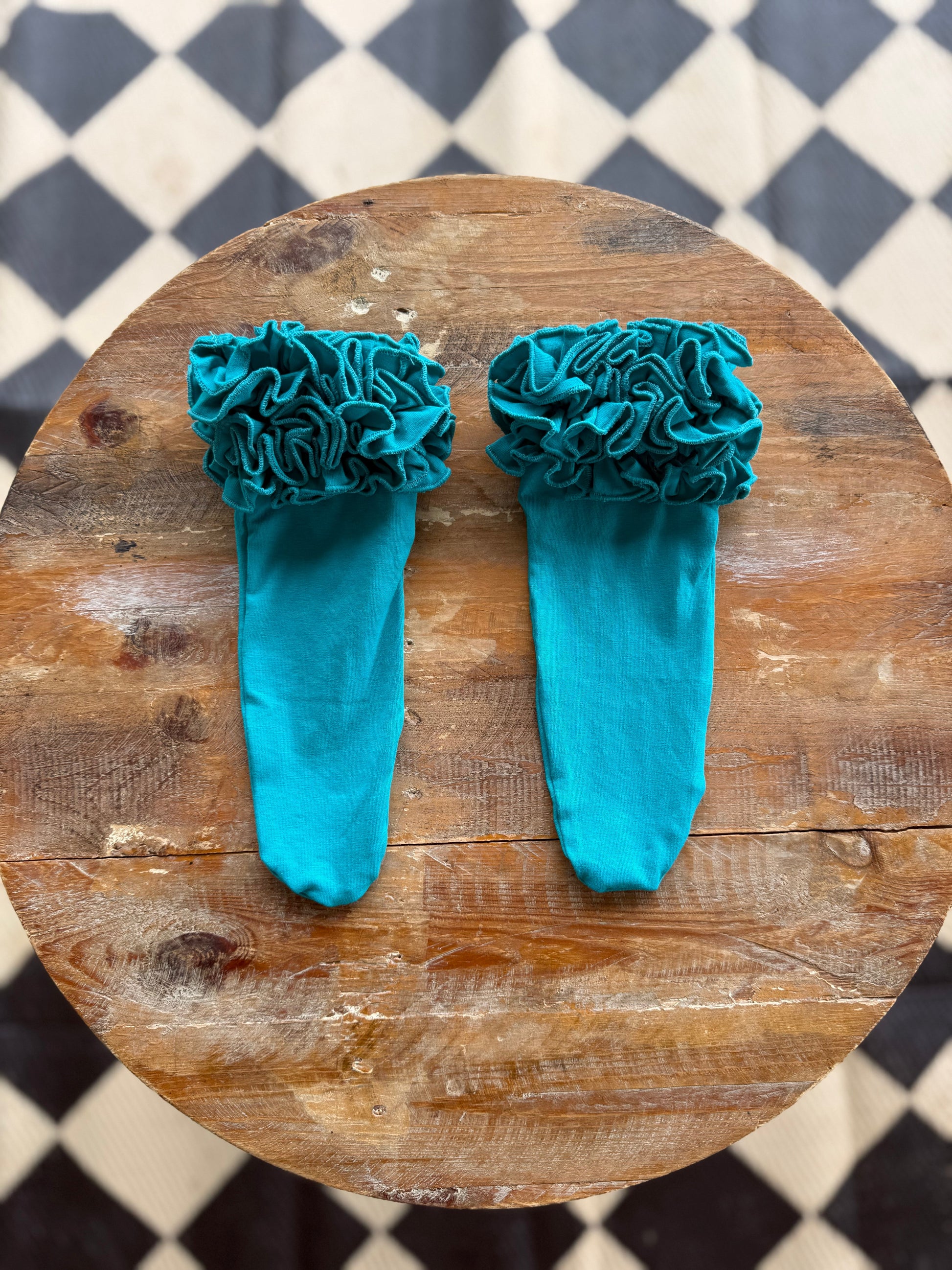 Sizes are approximate. Circumference is measured at the base of the ruffle. Length is from tip of toe to top of ruffle.